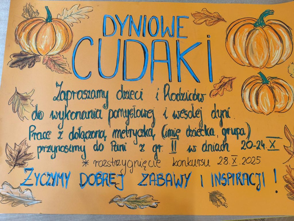 Gorąco zachęcamy Dzieci i Rodziców do przygotowania pomysłowej, wesołej jesiennej dyni.